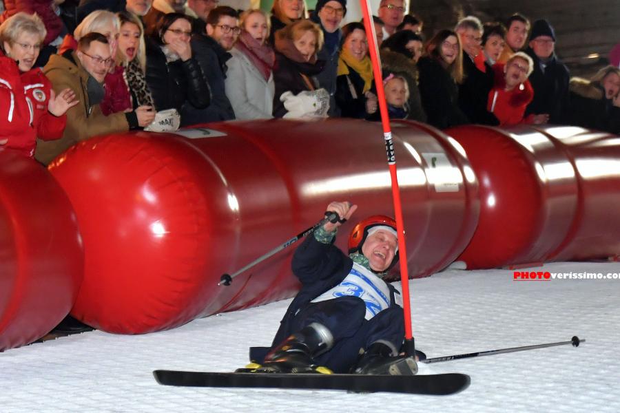Dans le cadre des festivités de Lausanne en Jeux et organisé par les Ecoles Suisses de Ski vaudoises, le Slalom des députés a eu lieu le 14 janvier sur la piste synthétique de ski alpin de la rue Pépinet. Ici, la chute spectaculaire du Vert Pierre Zwahlen.