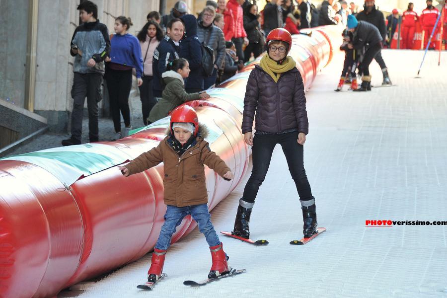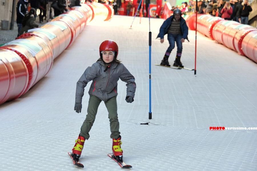Dans le Quartier du Flon un mini-tremplin de saut à skis était proposé aux plus petits.