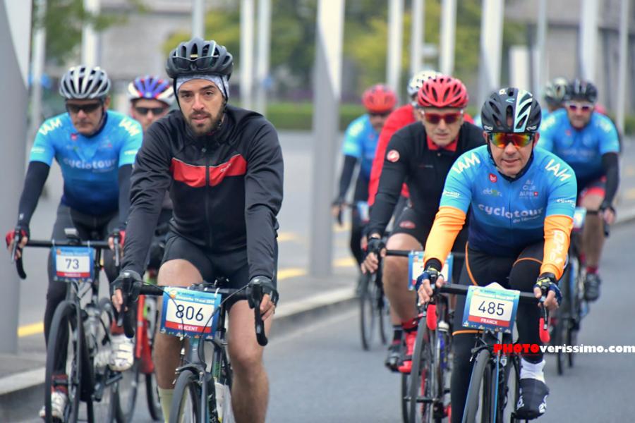 La 16e édition du Cyclotour du Léman a eu lieu dimanche dernier. Cette randonnée ouverte à tous, réunit cyclotouristes et cyclosportifs. L'épreuve longe les rives suisses et françaises du Lac Léman. Ici, ambiance à Ouchy lors du départ des participants à 6h30 sur la place de La Navigation. © Valdemar VERISSIMO