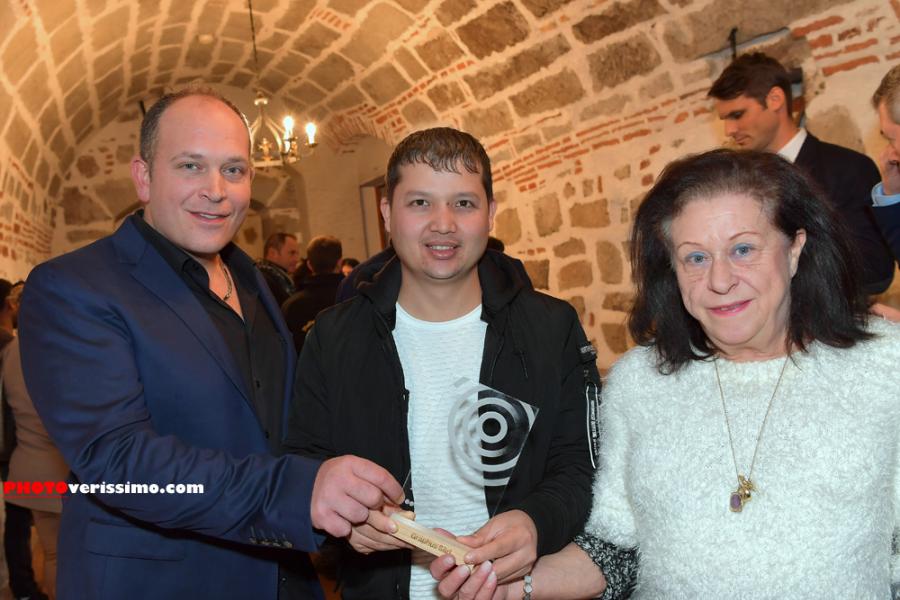 • Hasnin Hashemi est entouré par Raphaël et Viviane Serex, de l'imprimerie Graphus.
