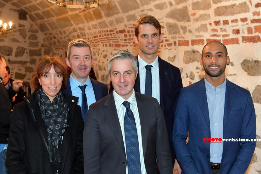 • Florence Nicolier, cheffe du Service de l'Economie de la Ville de Lausanne, Olivier Rau et Christophe Paris, secrétaire et président d'ERL. Devant, Pierre-Antoine Hildbrand, municipal et Tomé Varela, responsable de projets ERL.